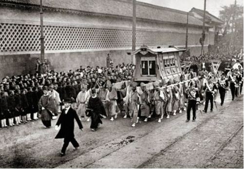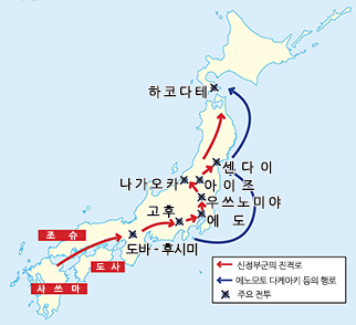 1868년 천황의 친정 선포에도 불구하고 막부는 신정부에 굴복하지 않고 반란을 일으켰다. 막부가 동원한 무사들은 신정부가 동원한 농민 출신 군대를 얕잡아 봤지만 서양식 무기로 무장한 군대를 당해 낼 수 없었다. 보신전쟁이라 불린 이 전쟁을 마지막으로 무사세력 몰락하였다. 하지만 천황을 맹목적으로 숭배하는 일부 무사층이 천황의 친위대로 불법 행동을 맡게 된다. 이들이 바로 광개토왕 비문을 위조하고 만주와 한반도에서 첩자 노릇을 한 대륙 낭인들이다. 몰락 무사 중 한 사람인 도야마 미쓰루는 천황을 위해 친위대를 꾸렸고 김옥균을 후원했으며 을미사변을 간여하여 상당한 돈과 조직을 만들어 어둠의 조직 총수가 되었다. 이 조직이 오늘날 일본 야쿠자의 효시다. 조선 야쿠자의 두목 하야시 등도 여기 가담한 인물이라고 한다