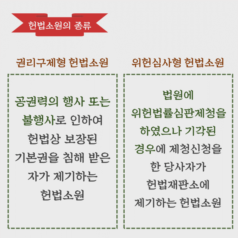 헌법재판소법에 따라 다른 법률에 구제 절차가 있을 때는 그 절차를 모두 거친 후에 헌법소원을 청구할 수 있다(보충적 요건) 통상 행정작용에 따른 기본권 침해는 일차적으로 행정소송 같은 법원의 재판을 모두 거쳐야 한다. 막상 행정소송 결과에 불복해 헌법소원을 청구하려 하면 이는 재판소원이 되므로 허용되지 않는다. 행정소송을 제기하는 순간 헌법소원 자체가 봉쇄되는 것이다. 이는 상대적으로 민주적 정당성이 강한 입법권 행사만 헌법소원 대상이 되는 결과를 초래하게 된다. 헌재는 원칙적으로 법원의 재판을 대상으로 하는 헌법소원 청구는 허용하지 않는다. 다만 매우 제한적으로 재판소원이 가능한 판례를 내놓았고 그때마다 대법원은 격렬하게 반발했다. 1997년 헌재는 처음으로 대법원 확정 판결을 취소했다. 헌재가 이미 소득세법 조항에 대해 한정위헌(법 조항 자체는 합헌이지만 해석은 위헌)을 결정했는데 대법원이 이를 따르지 않았다는 이유에서 당시 헌재는 법원이 헌재가 위헌 결정한 법률을 적용해 국민 기본권을 침해한 경우에도 법원의 재판에 대한 헌법소원이 허용되지 않는 것으로 해석한다면 헌법에 위반된다고 선언했다 2022년에는 대법원 최종 판결을 취소하며 헌재 위헌 결정의 기속력을 부인한 재판에 대해서도 헌법소원이 가능하다는 판례를 내놓았다. 대법원은 이런 헌재 판단을 법원 고유권한인 법령의 해석 적용 권한 침해로 규정해 왔다. 법 조항을 어떻게 해석할지는 법원 고유의 권한이므로 헌재가 한정위헌이니 한정합헌이니 왈가왈부할 대상이 아니며 대법원이 헌재 결정을 따를 이유도 없다는 것이다. 결국 대법원 확정 판결 -> 헌재의 대법원 판결 취소 -> 대법원의 헌재 결정 무시 악순환이 반복되며 두 최고법원 간 갈등의 피해는 소송 당사자인 국민이 떠안는 구조가 굳어졌다,
