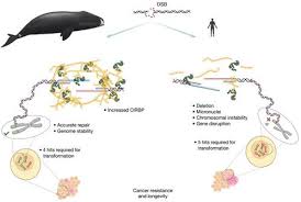 지구에서 가장 오래 사는 포유류는 200세 이상 사는 북극고래이다. 과학자들은 장수의 비밀을 유전자에서 비밀을 찾았다. 암을 유발하는 유전자 돌연변이가 적고, 설사 돌연변이가 생겨도 바로 복구하는 것으로 나타났다. 북극고래는 몸길이가 15-24m이고 몸무게는 80톤을 넘는다. 지방 두께가 50㎝나 돼 북극해의 얼음장 바다에서 살 수 있다. 북극고래의 세포는 손상된 DNA를 복구하는 데 도움을 주는 저온 활성화 단백질이다. 한편 처음에는 고래가 오래 사는 것은 암에 대한 저항력이 있기 때문이라고 생각했다. 예상과 달리 고래 세포가 암세포로 바뀌는 데 필요한 발암 돌연변이 수는 인간세포보다 적었다. 암이 생기는 데 필요한 돌연변이 문턱이 인간보다 낮다는 말이다. 또한 고래 세포는 손상된 DNA를 복구하는 능력도 더 뛰어났다. 돌연변이가 생기면 암에 취약한 고래지만, 그런 돌연변이가 생기는 일을 원천봉쇄하는 셈이다. 연구진은 북극고래 세포에서 손상된 DNA를 복구하는데 CIRPB 단백질이 핵심적인 역할을 한다는 사실도 발견했다. 이 단백질은 북극고래가 사는 얼음바다와 같은 저온 환경에서 작동한다. 인간세포에 CIRPB를 생성시키자 DNA복구 능력이 향상됐다. 이 단백질을 초파리에 발현시키자 수명이 늘어났다. DNA 돌연변이를 유발할 수 있는 방사선에 대한 저항성도 높아졌다. 초파리는 작은 곤충이지만 인간과 유전자를 60% 공유해 생물학과 의학 실험에 많이 쓴다. 또한 DNA 복구 능력이 장수 비결이라는 사실은 육지에 사는 장수왕에게도 확인됐다. 바로 땅 속에 벌거숭이두더지쥐이다. 아프리카 동부 지역에 사는 이 동물은 몸길이가 8-10㎝에 몸무게는 30-35g이다. 수명이 32년으로 같은 크기의 다른 쥐보다 10배 이상이다. 사람으로 치면 800세 이상 사는 것이다. 벌거숭이두더지쥐의 장수 비결은 외부 침입자를 감지해 면역 반응을 유발하는 효소인 cGAS(고리형 GMP-AMP 합성효소)에 생긴 돌연변이 덕분임을 알아냈다고 했다. cGAS는 세포핵 밖에서 암이나 바이러스의 DNA를 감지하는 역할을 한다. 고래와 두더지쥐의 DNA 복구 능력은 강력하다는 것이다. 북극고래의 평균 수명은 268년이라고 했다. 연구진은 척추동물 252종의 유전자를 분석해 이 중 수명과 관련된 유전자 42개를 발견했다.