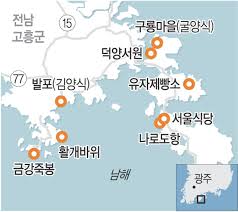 나로도에 유배온 이건명은 능지처참으로 비참하게 죽었다. 옷을 모두 벗기고 마을 주민들을 매수해 쇠꼬챙이와 뾰족한 칼로 온몸을 여러 번 쑤시게 해서 오랫동안 고통을 준 뒤에야 비로소 목을 베었다. 능지란 구릉이 오랜 세월에 걸쳐 평지가 된다는 뜻이고 처참은 목을 베어 죽인다는 것이다. 이건명은 청나라에 사촌동생 연잉군의 왕 추인을 받기 위해 갔다 청나라는 경종 나이가 아직 30대 초반이라 자식을 볼 수 있는데 왜 동생을 내세우려 하느냐며 추인해주지 않으려 했다. 이건명은 경종은 양기가 부족해 남성구실을 못하니 앞으로 아이를 낳을 수 없다는 얘기까지 했다 결국 청나라로부터 추인을 받기는 했다. 하지만 자신의 불임설을 청나라까지 가서 거론한 형태에 경종은 격노했다. 그게 결국 이건명의 처참한 죽음으로 이어졌다. 그가 죽은 후 2년 뒤에 경종은 병으로 급사하고 영조가 즉위했고 그는 복위하고 나로도에 그를 모신 덕양서원이 세워졌다. 내나로도는 지금 굴 작업이 한창이다. 우리가 먹는 굴은 대부분은 1년생이다. 굴은 1년생은 모두 수컷인데 2년째부터 자동으로 암컷으로 바뀐다. 2년생 암컷이 비린 맛도 덜하고 풍미도 더하다. 2년생은 씻거나 먹을 때 우유라고 부르는 흰 액체가 적게 나오고 살이 더 실하다. 고흥의 특산물에는 유자공원에는 유자도 있다 특히 유자제빵소가 있어 지역 명소로 자리잡고 있다. 또한 고흥 출신 화가 천경자의 타계 10주년 리마스터 전사회가 고흥아트센터에서 열리고 있다