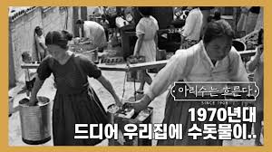조선시대 화가 김홍도의 풍속화첩 중에 우물가라는 그림이 있다. 그림의 배경은 우물가이고 한량으로 보이는 한 사내가 갓을 벗고 앞섶을 풀어헤친 채 여인들에게서 물을 얻어 마시고 있다. 물을 얻어 마시는 사내의 응흉한 눈빛은 여인들을 향한다. 사내의 이런 민망한 행동에 젊은 두 여인은 두레박으로 물을 떠주면서도 눈길을 돌려 애써 외면한다. 사내 뒤에서 이 모습을 못마땅하다는 듯이 눈을 흘기고 있는 나이 든 여인의 모습이 대비를 이룬다. 우물가는 여인들의 공간이었다. 남자가 우물가를 찾는 경우는 흔치 않았기 때문에 물 한 바가지를 주고 받은 인연으로 사랑이 싹텄다. 때로는 그 사랑이 역사의 한 장면으로 기록되기도 했다. 고려 태조 왕건과 장화황후 오씨, 조선 태조 이성계와 신덕왕후 강씨는 모두 우물가에서 물 한 바가지의 인연으로 맺어진 사랑이다. 두 여인은 물이 담긴 바가지에 나뭇잎을 띄워서 건네는데 나뭇잎을 왜 띄웠냐고 물으니 물을 급히 마시면 체하실까 싶어 나뭇잎을 불어가며 천천히 드시라고 띄운 것이라고 했다. 그러나 여자의 입장에서 우물가는 물을 긷고 빨래하고 설거지하는 고단한 삶의 눌어붙은 곳이다. 김홍도의 우물가에서 아낙네가 이고 있는 물동이는 18리터 정도로 18kg로 옹기무게와 함께 하면 20kg은 된다. 사무실 생수통 무게가 20kg정도다. 이는 하루 한 사람의 양이고 7명이 가족이 살았다면 140리터로 물 일곱 동이는 족히 필요하다는 것이다. 이처럼 허드렛일은 여자의 몫이었다. 그러다가 1970년대 상수도가 보급되면서 많이 줄어들었다. 우리나라 상수도 보급률은 99.4%이다. 케냐 소말리아 등은 여전히 먼 길을 물을 긷기 위해 가고 있다. 더욱 심각한 것은 가뭄이 들면 더 멀리 걸어서 물을 길로 가야 한다는 것이다.