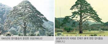 살아있는 아내를 두고 젊고 예쁜 여인과 운우지정을 나누다가 사생아를 낳은 나무이야기가 있다. 그 주인공은 정이품송으로 조카 단종을 폐위하고 왕위에 오른 세조 때였다. 왕위를 찬탈한 세조는 민심이 흉흉했고 권력은 불안했다. 반전의 카드로 세조는 불교의 힘이 필요했다. 유교를 기반으로 세워진 조선은 숭유억불을 국가 정책으로 삼았다. 건국의 본뜻과는 달리 세조는 전국 곳곳 절을 다니며 시주하고, 공양했다. 왕의 이름으로 직접 절을 짓기도 했다. 오늘날 탑골공원 자리에 있었던 원각사가 대표적이다. 부처님의 자비로 자신의 과오를 씻고자 했던 것이다. 정이품송의 일화도 이 같은 세조의 과오 씻기의 맥락에서 등장한다. 그러나 정이품송의 이야기는 전설에 가깝다. 세조가 충북 보은에 이름난 법주사를 방문할 때였다. 화려한 어가를 탄 세조가 가지가 무성한 소나무를 지나고 있었다. 세조가 말했다. 어가가 나무에 걸리겠다. 그때 소나무가 가지를 들어 올렸다. 마치 임금이 편히 지나가기를 바라는 듯이 이를 갸륵하게 여긴 세조가 이 나무에 정 2품에 해당하는 높은 벼슬을 내렸다고 전해진다. 이때부터 이 소나무를 정이품송으로 불렸다. 이는 자연도 세조를 우러러볼 수 만큼 그가 정당성이 있는 존재라는 것으로 보여준 것이다. 그러나 600년의 정이품송은 나이에 장사없듯이 생기가 없어갔다. 태풍과 폭설에 가지가 폭삭 주저앉았기도 했다. 늙고 병들어 지친 정이품송이 사람들은 가여웠다. 고아한 모습을 계속 보고 싶어한 까닭에 그의 후손 격인 후계목을 만들기로 결정했다. 마침 알맞은 짝이 있었다. 보은 서원리에 높고 꼿꼿이 뻗은 정이품송과 달리 낮게 넓게 퍼진 모양이 마치 어머니의 너른 품 같아서 이 소나무를 정부인송이라고 불렀다. 교배를 시켰으나 후계목이 나오지 않았다. 산림청은 포기하지 않고 2001년 강원도 삼척에 있는 미인송이 신붓감으로 낙점됐다. 미인송은 젊은 나무라 후계목은 무럭무럭 자랐다. 서울 동대문구 홍릉숲에 그 치정극의 결과물인 후계목이 자라고 있다