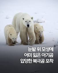 캐나다 북동부에서 북극곰 생태를 연구 중인 과학자들이 북극곰 암컷이 다른 어미의 새끼를 입양한 드문 사례를 보고했다. 북극 최상위 포식자인 북극곰이 친자식이 아닌 새끼를 받아들이는 것은 이례적인 일로 지난 50년간 단 13차례만 관찰됐다. 캐나다 매니토바주 처칠 인근 서부 허드슨만에서 매년 이뤄지는 북극곰 이동 중 생후 5년 된 어미곰이 10개월 된 새끼 곰 두 마리와 이동하는 모습을 포착했다. 지난 봄 연구진이 어미곰과 새끼는 한 마리였다. 연구진은 입양된 새끼의 친어미에게 어떤 일이 벌어졌는지 확실히 알지 못하지만 유전자 샘플 등을 통해 어미를 확인하려고 노력 중이다. ‘북극곰의 입양은 매우 드물고 이례적이고 했다. 연구진은 암컷 북극곰은 훌륭한 엄마들이라서 새끼를 돌보고 보살피는데 최적화돼 있다고 했다. 야생 북극곰이 성체까지 살아남을 확률은 평균 50%정도지만 어미의 보살핌을 받으면 그 확률이 높아진다고 한다. 어미 곰 X33991은 세계에서 가장 많이 연구된 개체군 중 하나인 서부 허드슨만 북극곰 아집단에 속한다. 연구된 4600마리 가운데 친자식이 아닌 새끼를 입양한 사례는 이번을 포함해 13번뿐이다. 연구진은 두 새끼는 건강하고 영양 상태도 좋은 편으로 보이며, 앞으로 약 1년 반 동안 어미와 함께 지낼 것으로 예상된다. 북극곰 가족은 이후 해빙으로 향하게 되는데 그곳에서 새끼들은 어미에게 물개 사냥법과 스스로 생존하는 법을 배우게 된다. 북극곰은 겨울 동안 얼음 위에서 먹이를 사냥하고 여름에는 몇 달씩 아무것도 먹지 못한 채 긴 단식 기간을 견딘다