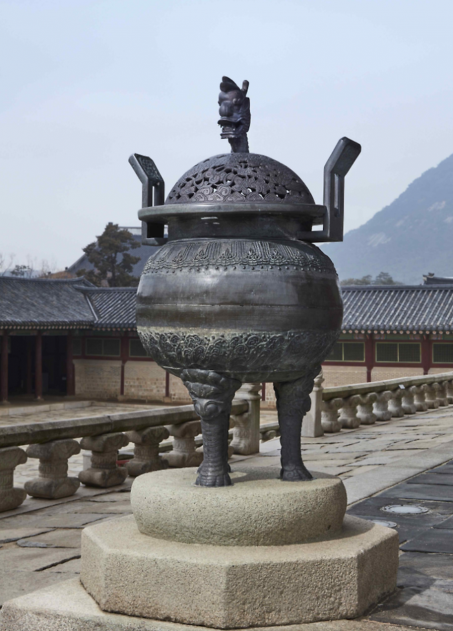 조선 왕실의 권위가 집결된 경북궁 근정전, 그 너른 앞마당 양옆에는 세 개의 발을 딛고 선 거대한 향로 두점이 위용을 자랑한다. 하지만 반세기 넘게 온전한 형태는 아니었다. 향 연기가 뿜어져 나와야 할 용 형상의 뚜껑이 사라진 채, 뻥 뚫린 몸체만 남겨져 있었기 때문이다. 훼손된 왕실의 자존심이 60여년 만에 비로소 제 모습을 되찾았다. 경북궁관리소는 유실됐던 뚜껑 두 점을 재현해 24일부터 온전한 형태의 향로를 국민에게 상시 공개한다고 했다. 향로에는 조선 역사의 굴곡이 고스란히 배어 있다. 1457년 세조 때 주조돼 광화문 서쪽을 지키던 대종을 녹여 만들었다. 조상의 혼이 담긴 쇠물로 새로운 시대의 권위를 주조해냈다. 국가 의례가 열릴 때마다 연기는 근정전을 신성한 공간으로 탈바꿈시켰다. 그러나 일제강점기를 거치며 관리가 소홀해진 탓인지 뚜껑의 행방은 묘연해졌다. 당시 촬영된 흑백 사진에서도 이미 보이지 않거나 위태롭게 놓인 모습이 포착된다. 1961년과 1962년 사이, 두 점 모두 자취를 감춰 향로는 몸체만 남은 불안전한 유물이 됐다. 소리소문없이 사라졌던 뚜껑은 국가무형유산 장인의 손끝에서 되살아났다. 원광식 주철장 보유자와 원천수 이수자가 자문단의 고증을 거쳐 제작을 맡았다. 국보인 근정전의 품격에 누가 되지 않도록 섬세한 용의 비늘 하나까지 철저히 되살려냈다. 국가유산청 관계자는 단순히 뚜껑을 새로 만든 것이 아니라 단절됐던 조선후기 금속 공예의 맥을 다시 이었다고 했다. 근정전에서 향로 뚜껑은 하늘로 승천하는 용의 기개를 빌려 왕조의 영속성을 기원하는 상징물이다.