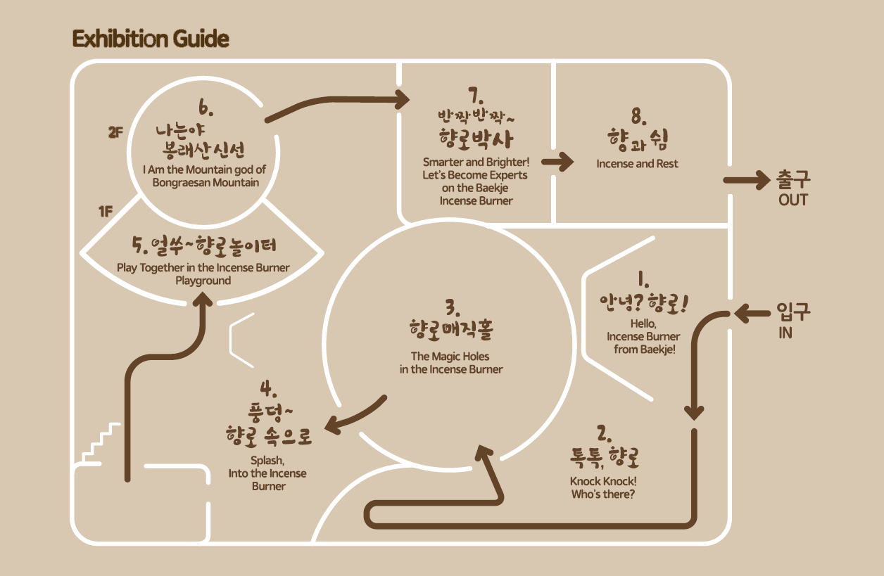 물을 헤치며 솟구치는 용이 받치는 연꽃 모양의 몸체, 꼭대기의 봉황을 떠받치는 산등성의 모양의 뚜껑....백제의 물과 땅, 하늘을 형상화한 이것은 사람 19명, 현실 상상의 동물 67마리를 표현한 도상을 품고 있다. 백제의 전통 신앙이 드러나고 아름다움이 집약된 유물이자 국가지정문화유산 국보인 백제 금동대향로의 모습이다. 국립부여박물관에 금동대향로만을 전시하는 전용 전시관인 백제대향로관이 23일 문을 연다. 1933년 발굴된 이래 박물관에 상설 전시되며 아름다움을 뽐내고 있다. 전시실 안팎의 질감이 독특하다. 유리 찬장 위 사방을 둘러싼 금속판은 표면이 거칠게 제작돼 빛을 은은하게 퍼뜨린다. 전시실 내부의 벽은 흙의 거친 질감을 살린 부분과 평평하게 다듬은 부분을 교차하며 무늬를 냈다. 이런 구성은 전시실 내에 연기가 흐르는 듯한 느낌을 준다 향로의 본질을 생각하게 한다. 금동대항로 또한 향을 피우던 물건이었다. 새겨진 여러 상징물은 고대 신앙과 도교, 불교 신앙에서 비롯됐다. 화려한 상징들 사이 12개의 구멍이 나 있다. 전시실에는 향과 음악도 함께 흐른다. 전통 음악을 현대적으로 재해석한 팀 박백수가 만든 음악의 이름은 숨, 향기 작가 한서향이 고대의 향기를 현대적으로 재해석해 만든 향기의 이름은 결이다. 둘을 합하여 숨결이 된다. 고대 유물을 둘러싸고 조명과 질감이 시각적으로 만든 분위기를 청각 후각적으로도 돋운다. 옛 백제의 절 등에서 향로를 피울 때 직접 사용했던 향인 유향과 백단향을 향 기둥 안에 직접 들어가면 맡을 수 있다. 금동대향로에는 백제삼현, 백제금 등 5가지 악기를 불고 있는 악사도 새겨져 있는데 그들이 연주하는 악기 5개의 소리를 들을 수 있는 키오스크도 설치돼 있다.
