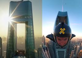 세계에서 가장 높은 호텔 전용 건물인 씨엘 두바이 마리나의 좁은 틈새를 윙수트 선수들이 시속 200km 속도로 관통하는 비행을 선보였다. 비행사들은 호텔의 상징적 구조물인 바늘귀 공간을 정확하게 통과했으며, 나머지 팀원들은 건물 주위와 상공을 선회하며 입체적인 비행을 선보였다. 아찔한 기동을 마친 비행사들은 호텔 상공에서 낙하산을 펼쳐 지면에 안전하게 착륙했다. 윙수트는 몸에 부착된 날개막을 이용해 양력을 발생시켜 하강 속도를 전진 속도로 전환하는 원리를 이용한다. 특히 도심 빌딩 사이에서 발생하는 강력한 빌딩풍과 좁은 구조물 사이의 난기류를 이겨내기 위해서는 비행사의 정교한 신체 제어 능력이 필수적이다. 전문 스카이다이버는 5-10년전부터 준비를 시작했다고 밝혔다. 이번 비행 환경을 위해 최소 40-50회에 달하는 특정 연습 점프를 반복하며 숙련도를 높였다. 지난해 11월 15일 개관한 씨엘 두바이 마리나는 건물 전체가 호텔로 구성돼 있다. 높이는 365m에 달하며, 1000개 이상의 객실을 갖추고 있다. 건물 상층부에 바늘귀처럼 구멍이 있는 것이 특징이다