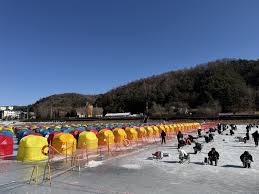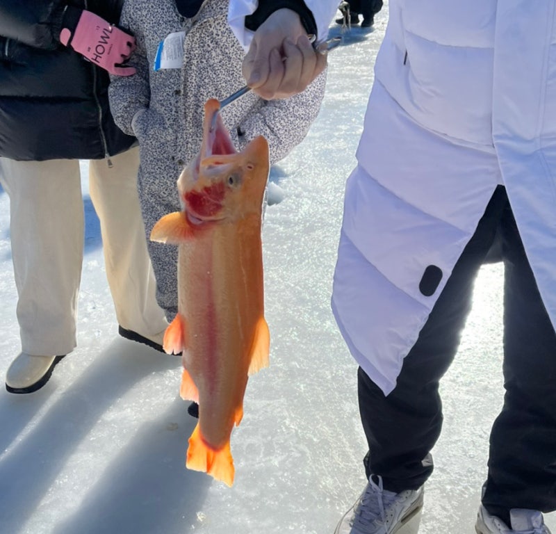 2026년 평창송어 얼음낚시 대회가 29-30일 강원 평창 진부면 오대천 평창송어축제장 일원에서 열렸다. 평창송어축제위원회가 축제 20주년을 기념해 마련한 특별 행사다. 이 대회의 관건은 많이 잡는 것이 아니라 월척 한 마리다. 참가자는 주최 측이 제공하는 낚싯대아 미끼만 사용할 수 있다. 낚시 구멍은 당일 추첨으로 배정했다. 제공된 낚싯대는 릴을 포함한 아이스로드이다. 강원도민 낚시 대회는 단순한 이벤트가 아니라 손맛을 아는 진짜 낚시꾼들이 모이는 자리다. 낚시 준비부터 송어를 끌어 올리는 손놀림까지 실력이 자연스럽게 드러났다. 순위가 결정되는 낚시대회지만 참가자들이 가장 노리는 것은 1등이 아니다. 황금송어다. 노란빛을 띤 황금송어는 하루 3마리만 풀린다. 황금송어를 잡는 순간 금 한 돈 즉시 지급된다. 평창 송어축제는 로또 같은 재미가 여기에 있다. 이번 강원도민 대회에는 247명이 참가했고 1등은 325g송어를 낚은 분이 차지했다. 평창 송어축제의 트레이드마크는 알록달록한 텐트 행렬이다. 바람을 막기 위해 설치된 텐트마다 두 개의 낚시 구멍이 뚫려 있어, 일행이 함께 기다림을 즐길 수 있는 구조다. 축제장에는 맨손 송이 잡이 이벤트도 있다. 눈 놀이터에서는 스노우 래프팅을 즐길 수 있다. 그리고 100m길이 리프트 눈썰매, 스노모빌 래프팅, 전통 썰매, 얼음 자전거, 얼음 카트까지 다양한 체험 프로그램 등이 있다. 참가자는 직접 잡은 송어는 회나 구이로 즉석에서 맛볼 수 있다. 평창 송어축제는 2007년, 2006년 수해로 침체된 지역 경제를 회복하기 위해 주민들이 자발적으로 시작한 축제다. 송어를 주제로 방향을 전환한 이후 민간 주도로 20년간 이어져왔다. 2025년 축제의 경제적 파급 효과는 약 931억원, 창출된 일자리는 6000여개에 달했다.