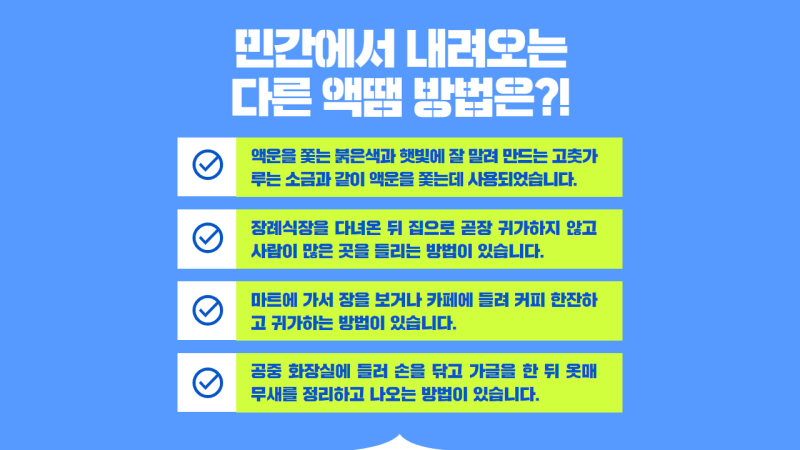 충북 옥천에서 누군가 소금을 대량으로 묘지에 뿌리고 가는 일이 발생했다. 경찰에 따르면 지난 20일 조상님 묘지에 소금이 뿌려져 있다는 주민들의 진정서가 접수된 것이다. 일대 야산에 있는 묘 11기에 소금이 뿌려져 있었다. 연고가 확인된 5기는 서둘러 소금를 치웠지만 나머지 6기는 함부로 손을 대지 못해서 소금은 그대로인 걸로 알려졌다. 경찰은 인근 CCTV를 통해 지난 10일 신원 미상의 2명이 렌터카에서 소금 포대를 꺼내는 장면을 포착했다. 경찰은 렌터카 업체를 통해 이들의 신원이 확인되는 대로 재물 손괴 혐의로 입건할 예정이라며 미신적 소행일 가능성에 무게를 두고 정확한 범행 동기를 조사할 방침이라고 밝혔다