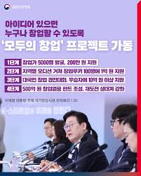 이재명 대통령은 30일 청와대에서 열린 국가창업시대 전략회의를 주재하며 오늘이 국가 창업 시대, 창업을 국가가 책임지고 고용보다는 창업으로 국가 중심이 바뀌는 대전환의 첫 출발점이라고 밝혔다. 앞으로 고용보다 창업에 중점을 두겠다는 대한민국을 창업국가로 만들겠다는 선언이다. 현재 중소벤처기업부는 우리나라를 4대 벤처 강국으로 도약하겠다는 정책 목표를 제시 창업 활성화에 나서고 있다. 이 대통령은 양극화 심화에 따른 K자형 성장에 우려를 보이며 창업에서 돌파구를 찾아야 한다. 이제는 창업 사회로 가야 한다고 강조했다. 이어 이 대통령은 전통 방식으로 평범한 고용으로는 좋은 일자리를 만들어 내는 데 한계가 있다면서 결국은 창업이다. 대한민국 국민은 뛰어난 역량을 가지고 있다. 감수성도 그렇고 교육수준도 그렇고 성실함이나 집요함, 손기술 등 기능, 또 사회적인 인프라, 모든 여건이 아주 좋다면서 로컬창업이든 테크창업이든 청년 중심으로 하게 될 것 같다. 스타트업 대책은 새 일자리를 만드는 것인 동시에 청년 정책 측면도 있다고 덧붙였다. 창업 지원 방식 전환도 주문했다. 이번엔 씨앗 만드는 것 자체를 지원해 보자는 게 오늘의 주제라며 아이디어 상태에서 시작할 때부터 정부가 지원하고 책임지는 방법이다. 전국적으로 대규모 경진대회를 해보고 붐도 일으켜 보고자 한다고 했다. 정부는 창업 인재 5천명을 발굴 및 지원하는 모두의 창업 프로젝트를 추진한다. 테크 분야서 4천명, 로컬 분야서 1천명 등 모두 5천명의 창업 인재를 선발해 1인당 200만원의 창업 활동 자금을 지원할 계획이다. 테크창업 분야는 2030년까지 10개 창업도시를 조성하고 방산 기후테크 제약바이오 등 딥테크 분야별 육성 방안을 순차적으로 추진한다. 로컬창업 분야는 지역자원을 활용한 로컬 거점상권 50곳과 글로벌 상권 17곳을 조성한다. 국민 참여형 창업 오디션으로 단계별 오디션을 거쳐 창업 루키 100명을 선발해 1억원의 창업 자금을 지원하고 최종 우승자에게는 상금 5억원고ㅑㅏ벤처 투자 자금 5억원 등 10억원 상당의 혜택을 준다. 이를 뒷받침하기 위해 500억원 규모의 창업열풍 펀드도 조성한다. 개인적으로 아쉬운 것이 지자체 선거에 청년표를 의식해 정치적 의미로서 담겨있다고 보고 정치인들이 내실있는 청년 창업 정책을 중장기 목표를 가지고 과감하게 실행하여 국가경제를 밀고 나아가야 하지 않을까 생각해 본다