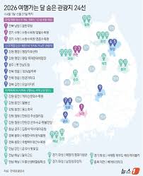 한국관광공사는 14개 기관 24곳 숨은 관광지를 했다. 한정개방, 신규개장, 지역특화 등 3가지 유형으로 나눴다. 한정개방으로는 명승 33호로 지정된 조선시대 대표 정원인 전북 남원의 광한루원이 야간 특별 개방에 나선다. 춘향전의 배경으로 유명한 광한루원의 야경은 낮과는 전혀 다른 분위기를 자아낸다는 점에서 이목을 끈다. 수원수목원도 5월 한달간 특별 야간 개방한다. 일월수목원과 영흥수목원 두 곳이 동시에 문을 열며 도심 속 야경과 함께 자연 복합문화공간을 즐길 수 있다. 신규개장 관광지로 강원 평창에 평창치유의 숲에 조성된 평창치유센터와 목재문화체험장이 동시에 개장한다. 울창한 숲속에서 힐링과 체험을 동시에 즐길 수 있다. 역사적 의미를 담은 신규개장지로 오월의 정신의 계승과 확산을 위해 원형을 복원한 옛 전남도청이 역사공간으로 새롭게 문을 연다. 전북 정읍에는 동학농민혁명의 역사와 국가유산을 미디어아트로 풀어낸 복합전시공간 1894달하루와 조선시대 대장금의 삶을 체험할 수 있는 장금이파크가 나란히 개장한다. 경북 김천에는 김천 캐릭터 오삼이와 함께 보물을 찾아 떠나는 야간관광 랜드마크와 오삼아지트가 새롭게 문을 연다. 강원 철원의 한탄강 주상절리길은 주상절리 협곡을 따라 잔도 위에서 풍경을 만끽할 수 있는 트레킹 명소다. 같은 철원의 한탄강 은하수교와 횃불전망대도 주상절리를 조망할 수 있는 곳이다. 전남 해남의 달마고도는 힐링 걷기 행사가 개최되는 명품 트레킹 코스로 꼽힌다. 경기 화성의 서해랑 제부도 해상케이블카는 서해갯벌과 낙조를 조망할 수 있는 전곡항-제부도간 국내 최장 해상케이블로 봄철 노을 명소로 주목받고 있다. 강원 홍천의 척야산문화수목원은 역사탐방과 산책을 즐길 수 있는 자연 힐링 명소이며 팔봉산은 비경과 괴암괴석이 홍천강과 어우러진 100대 명산이다 백두대간 고산지역 산림생물자원을 보전하는 아시아 최대 규모의 수목원인 국립백두대산수목원과 계절에 따라 피어나는 우리 꽃과 희귀식물을 감상할 수 있는 국립한국자생식물원도 새롭게 조망된 명소들이다. 봄꽃 여행을 위해서는 강진의 금곡사 벚꽃길이 있다.